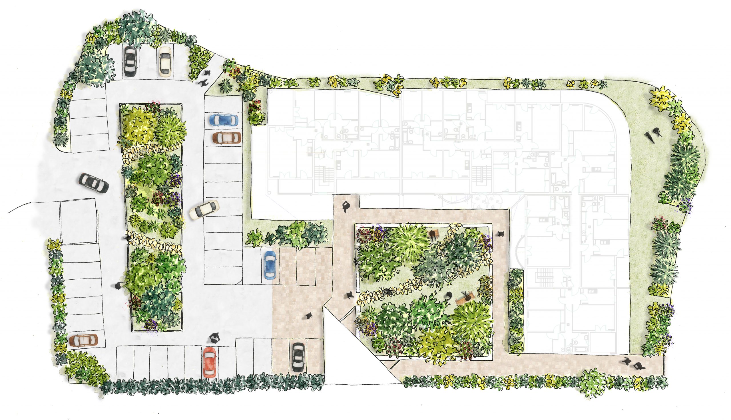 Pour ce projet, l’Atelier AOP a été sollicité par CDC Habitat afin de repenser les extérieurs de la résidence Papi Polo, située à La Garde.