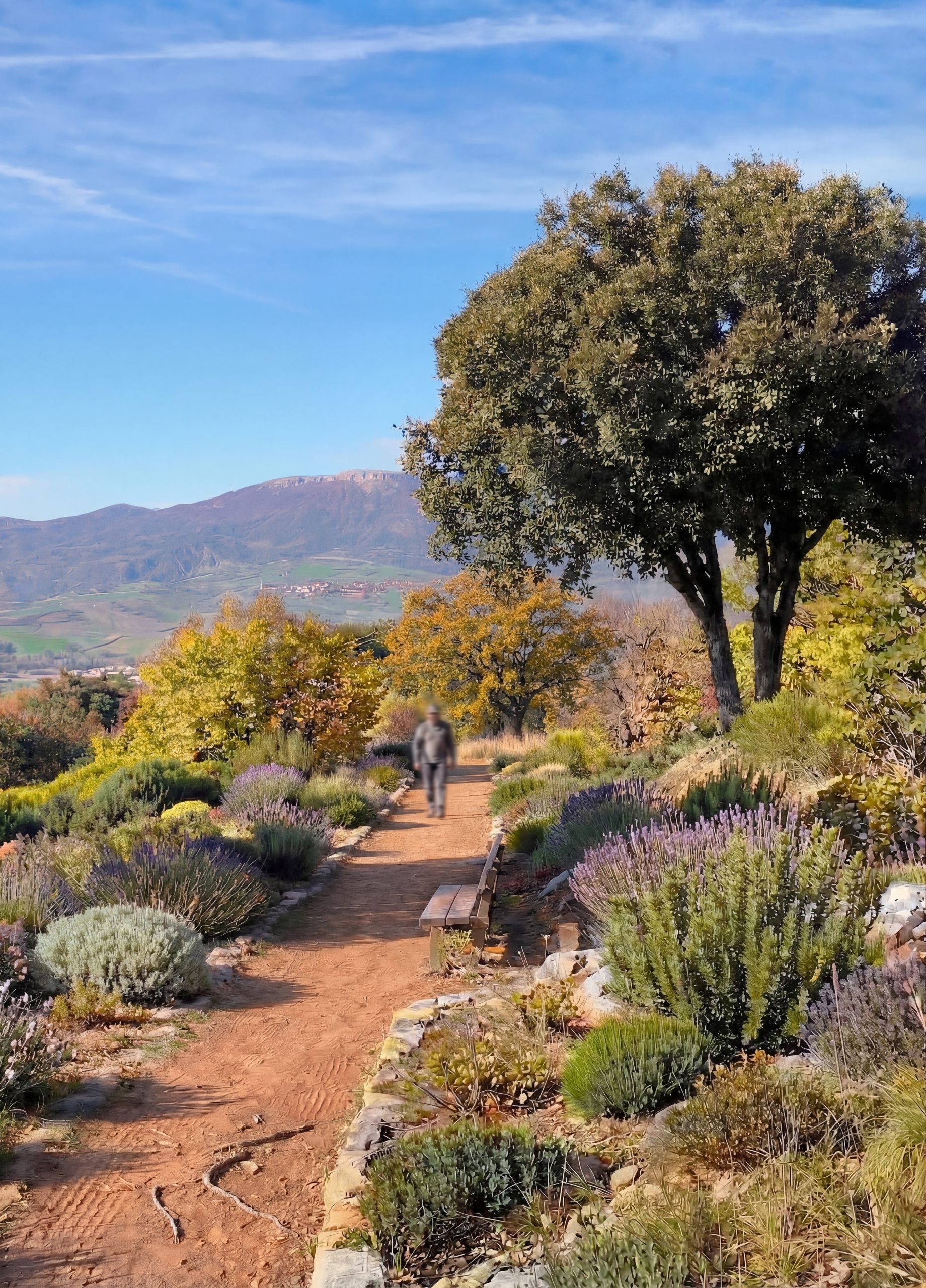 L’ensemble de la propriété est parcouru par un réseau de sentiers serpentant à travers les différents tableaux du jardin. Ponctués de points de vue et d’assises, ils offrent des pauses contemplatives ouvertes sur les reliefs montagneux environnants.